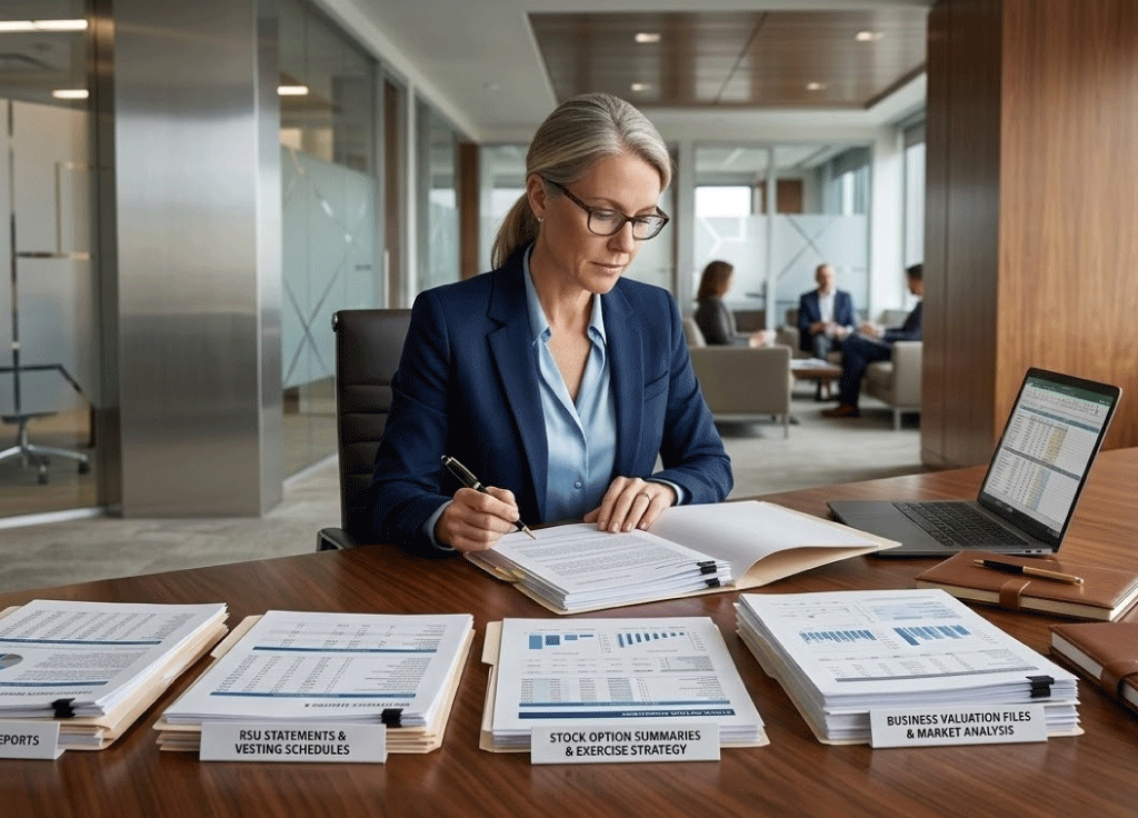 Business interests, equity compensation, and tax exposure create layers of complexity that require advanced financial strategy.